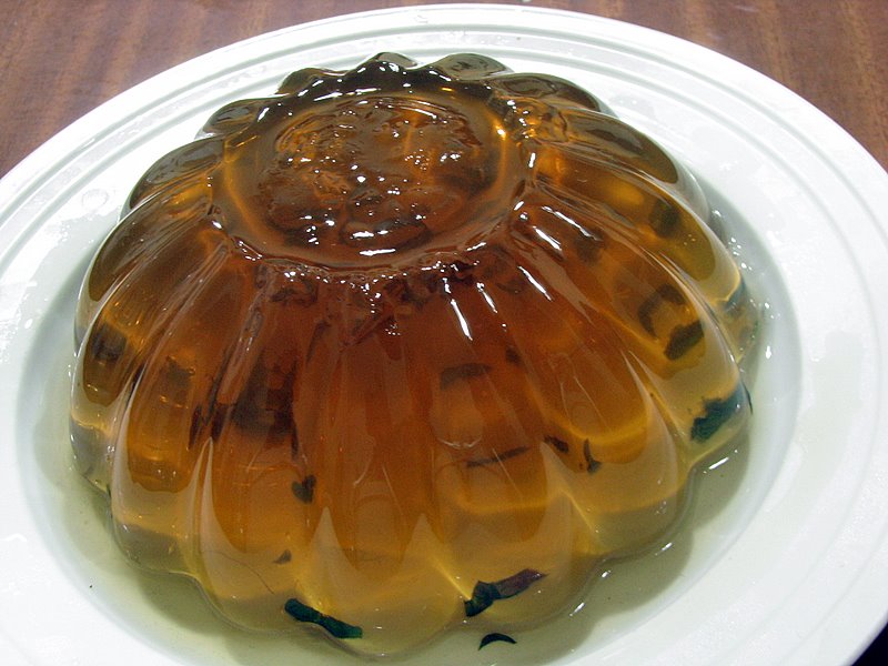 The neenish tarts story is priceless; I love your description: “the texture of chopped up erasers”. I have to say this is the first time I’ve seen a picture of gelatine leaves, somehow, they are not quite what I imagined. Your jelly looks so scrummy! I’d never heard of powdered apple tea sounds really interesting. I love Black Books too, but not 100% sold on The Mighty Boosh, have only seen 2 episodes somewhere in the middle, so maybe it would grow on me if I had watched it from the start.hehe, “Fat tooth”. Makes me laugh.