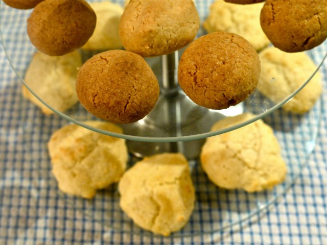 They don’t look overly exciting but these coconut kisses are in fact mighty delicious – crisp on the outside but meltingly shortbready within. They’d be perfect dunked in a cup of tea as long as you didn’t drop them – they’re pretty small – and they have echoes of several coconut-flavoured biscuits out there on the market except of course they’re way nicer, and much cheaper to make than buy. You could also try using oil instead of the melted butter – I’m sure it would work, and if so: vegan!
