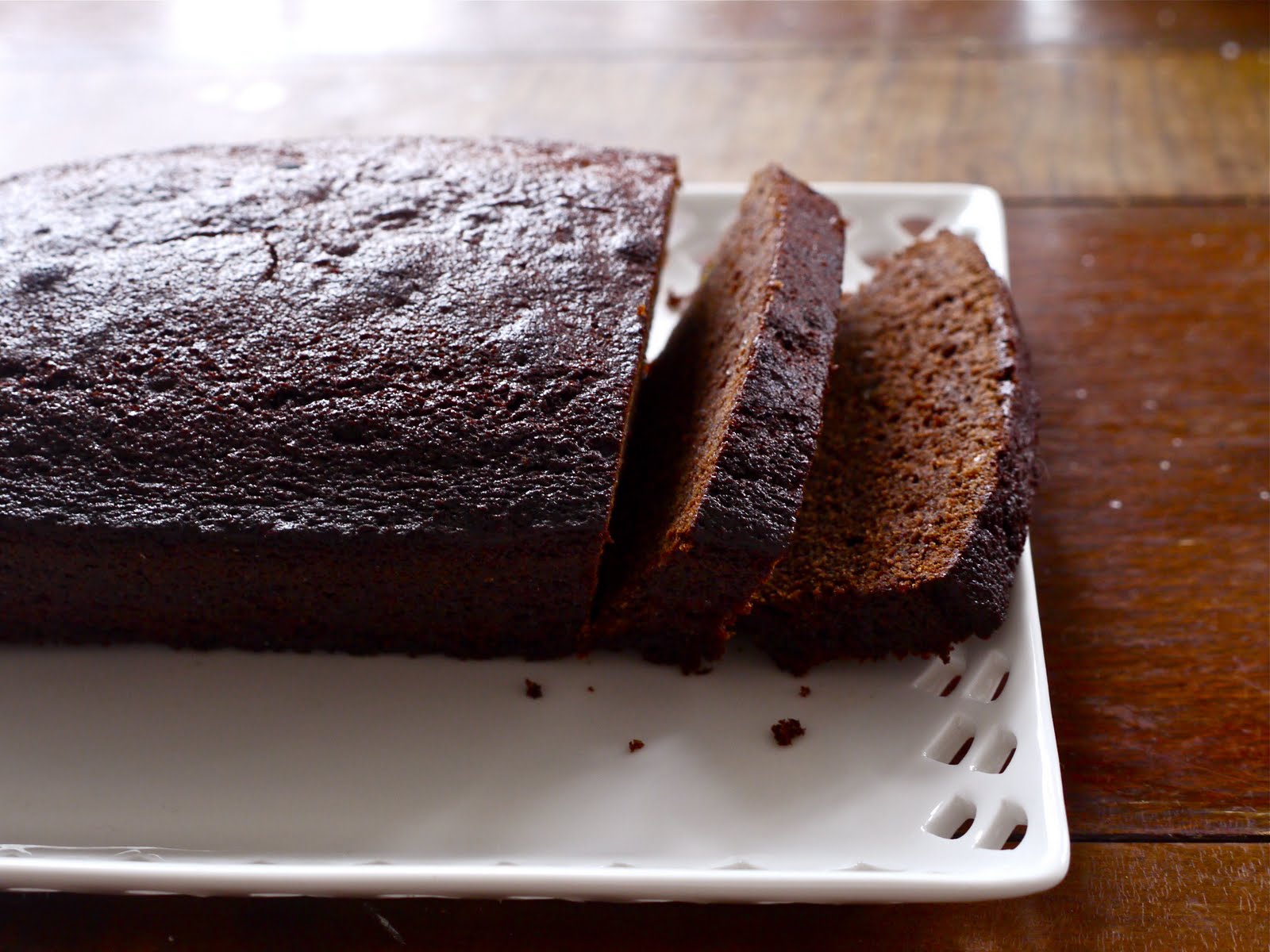 The orange flavour isn’t overpowering, more fragrantly suggested than in-your-face, but what’s there is completely delicious. The citrus and the caramelly golden syrup seem to pick up something good in the dark, dark cocoa, giving the cake an almost gingerbread intensity of flavour even though it’s very light-textured. It’s seriously good with a cup of tea and I reckon it would be amazing spread with cream cheese but unfortunately I didn’t have any in the fridge to test this theory.
