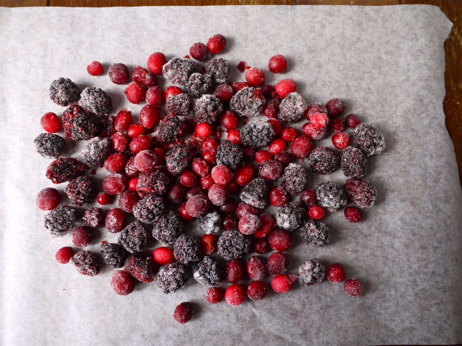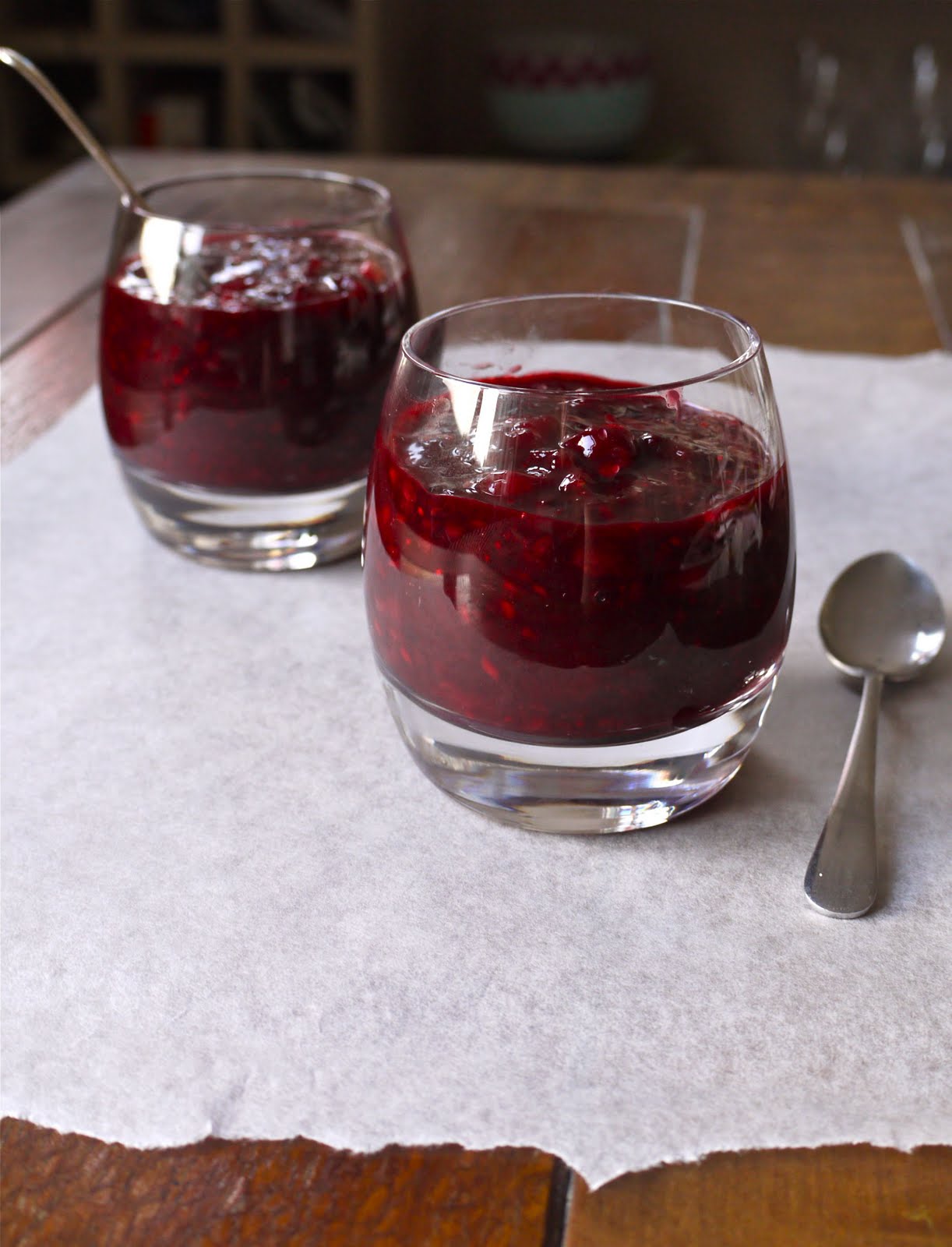 Bring the sugar and juice to a boil in a saucepan. Add the berries, bring to the boil again and carefully stir in the cornflour mixture, stirring really well so you don’t end up with lumps of cornflour. Remove from the heat, cool, then pour into glasses. Out of mine I got enough for the two glasses you saw plus a couple of tablespoons left over to be saved for making future breakfasts more exciting.