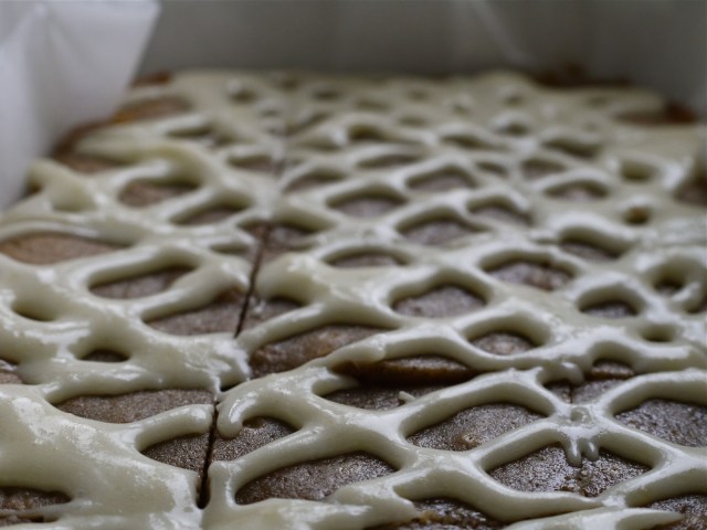 Which finally settled into Coffee-tinted Blondies With Baked Cream Cheese Icing.