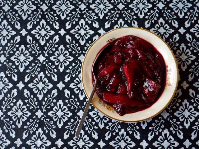 Something in the salty, wine-deep intensity of these is quite compulsive. I love them. It may look like you’re making tons, but you’ll get through it all easily, I promise. Best of all, tamarillos are actually in season here and reasonably priced. But once they’re gone, I think I’ll try making these with sliced pears, and then next Autumn, perhaps I’ll make it with feijoas. Inbetween times, I predict this would also be a wonderful marinade for sliced plums…all I’m saying is, there are options for you outside the realm of the tamarillo. But it’s a very, very good start.
