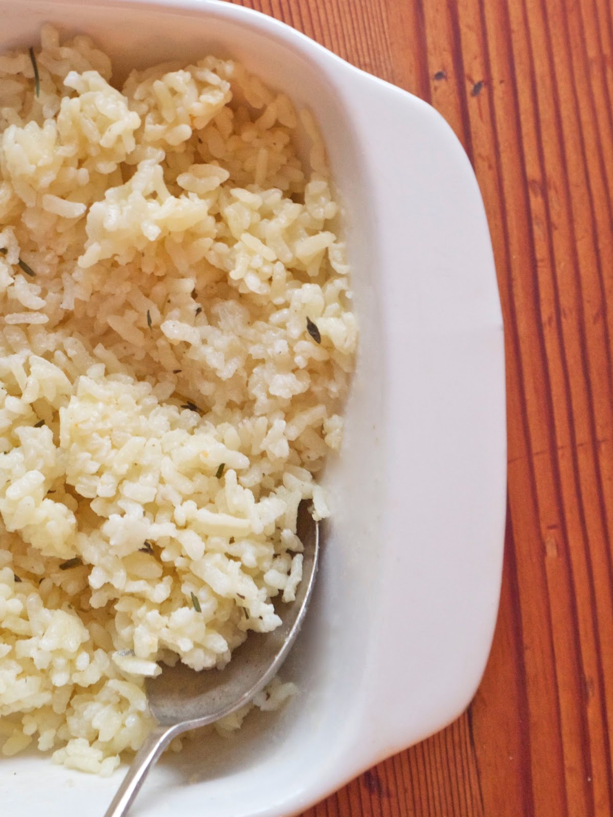 Cover the dish tightly with tinfoil, then bake for around an hour. At this point, you can stir in more butter, some lemon zest and juice, some herbs, some cream, parmesan, whatever, really. For this I grabbed a handful of chives and thyme leaves, since that’s what I had.
