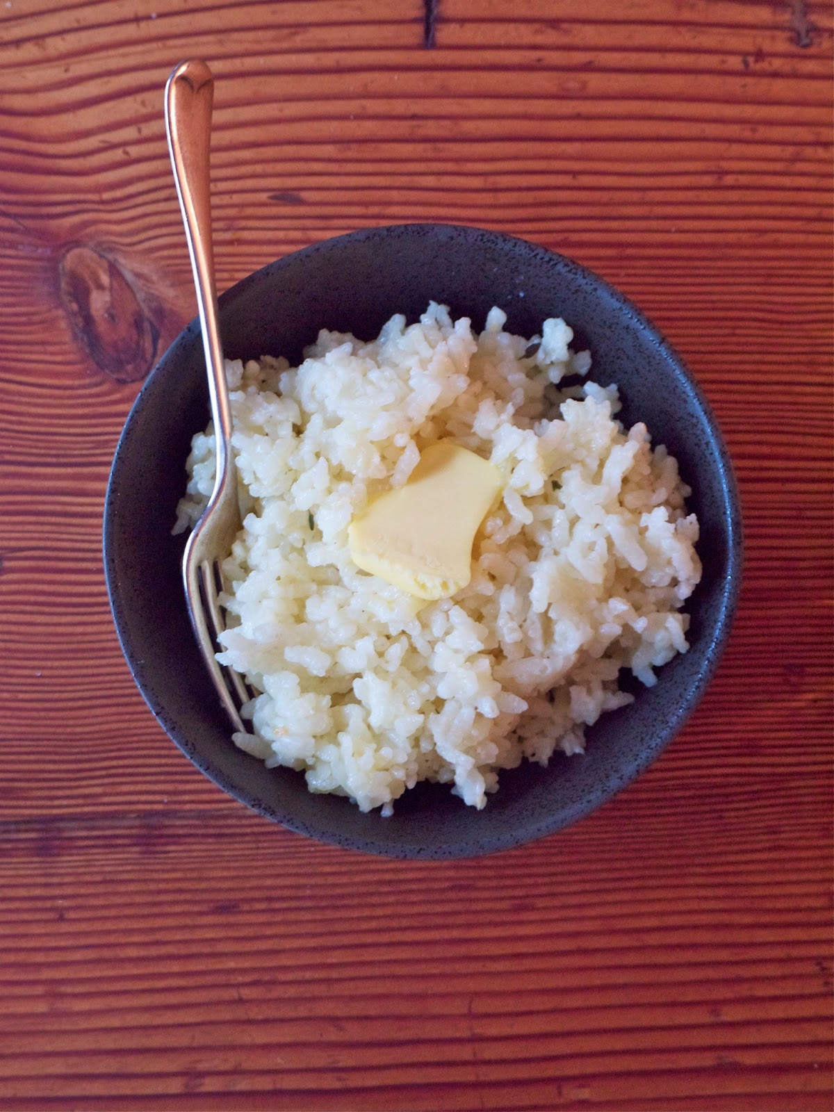 Just plain, with a little mustard and butter and lemon, it’s surprisingly fulsome – heftily creamy and starchily comforting, the rice’s natural flavour shining through.