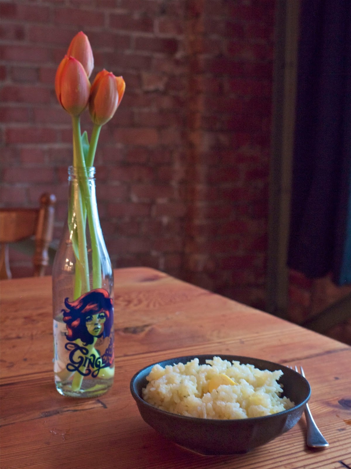 Also holding up well: this risotto recipe. I’ve made it three times in the last week. Once, twice, three times a lady recommending this recipe to you all. I know I often go on about how I work myself down to a nub writing this blog and the cookbook and meeting other various deadlines, but that aside, I’m really very lazy. If there’s a way I can do less than what’s required, even at the expense of the outcome, I will. It’s just the way it is. Some people accept that there’s hard work involved in life, some people (me) want to sit around and knit or check Twitter all day. Fortunately for me, Tim tends to meet this laziness with shrugging resignation/lifting/cleaning of all the things, but occasionally it works out well for both of us. In the case of this risotto, that is. I already love making risotto, with its calmingly repetitive stirring motion, and I don’t mean to sound like Troy McClure, but sometimes I want to take an already pretty easy thing and make it even more flagrantly low in effort. And not only does this make enough excellently delicious risotto for dinner and then a non-bleak lunch the next day (in your face, instant noodles!) it also uses only one dish. So, less dishes for Tim to do, or for him to rinse and then put in the dishwasher (I can’t comprehend how we have a machine to do the dishes for us but still have to pre-wash them, hence why I never do it.) I’m not trying to be proud of how lazy I am or anything, in fact I’m too lazy to expend any feelings over it whatsoever. Kidding! On the one hand, I feel like “why should naturally helpful, good people in society be celebrated when I can’t help being this unhelpful” and on the other hand sometimes I am just being a dick to see how much I can get away with not doing.