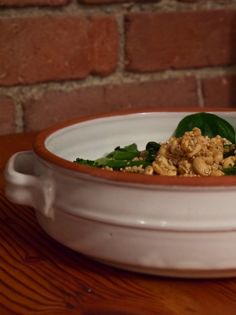 Broccoli is already a little nutty and sweet, so adding sesame oil and sweet kecap manis only but embiggens everything good about it already. Astringent pak choi and fast-wilting, metallic spinach are helped by the rich butter and crunchy seeds and cashews, and the lime simply brightens everything up with its citrus intensity. It’s very simple and plain, but not to the point of nondescript, where you forget that you’ve eaten immediately after you put your fork down. Nope, this is delicious stuff. And a terrific end to my Sunday.