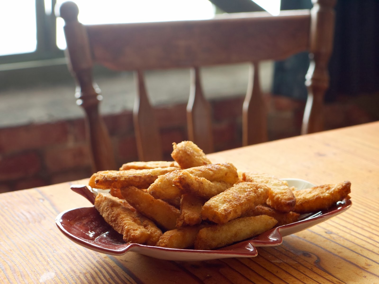 They are sufficiently sublime on their own, but if you want some kind of accompaniment, I’d suggest a tomato relish of some form, or a mix of wholegrain mustard and mayonnaise, or maybe aioli if you’re able to handle the rich-rich-rich of it all, or perhaps even just a dish of balsamic vinegar, which takes me back to pairing fish and chips with vinegar as a child.