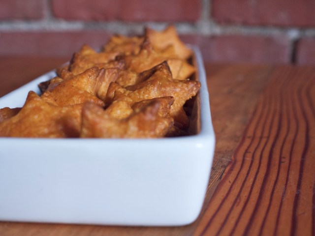 They taste like pastry, like the flakiest golden buttery shards of pastry from a croissants underbelly, like the spatters of cheese that bubble and go hard on the toasted sandwich maker and which are almost more delicious than the sandwich itself, and, after a few drinks, like the most rapturously sublime foodstuff in the world, basically. Thanks, Nigella.