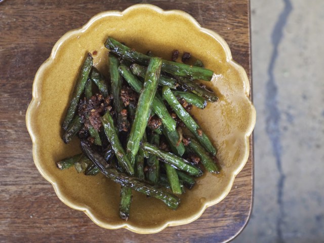 You weren’t born yesterday, you haven’t been living under a rock and this most definitely isn’t your first rodeo, so I appreciate that it’s a bit obvious when I say fried things generally taste better than when they’re cooked any other way. But nevertheless, did you know that frying makes beans taste amazing? They go all wrinkly and crisp and a little smoky, with that grassy burst of flavour still present when you bite into them. The sauce goes all sticky and excellent, the sugars caramelising a little and the hint of cinnamon giving subtle depth, while the vinegar and chilli distract from, yet elevate, the oiliness. And it’s really simple. The hardest thing is slicing the ends off the beans. Like, I can’t stress enough what a burden this is. If you can lure someone else into doing it for you, perhaps with the promise of fried beans as a reward, then do so (bonus hilarity: they’ll need to chop twice as many beans so that there’s enough for them to be rewarded with.)