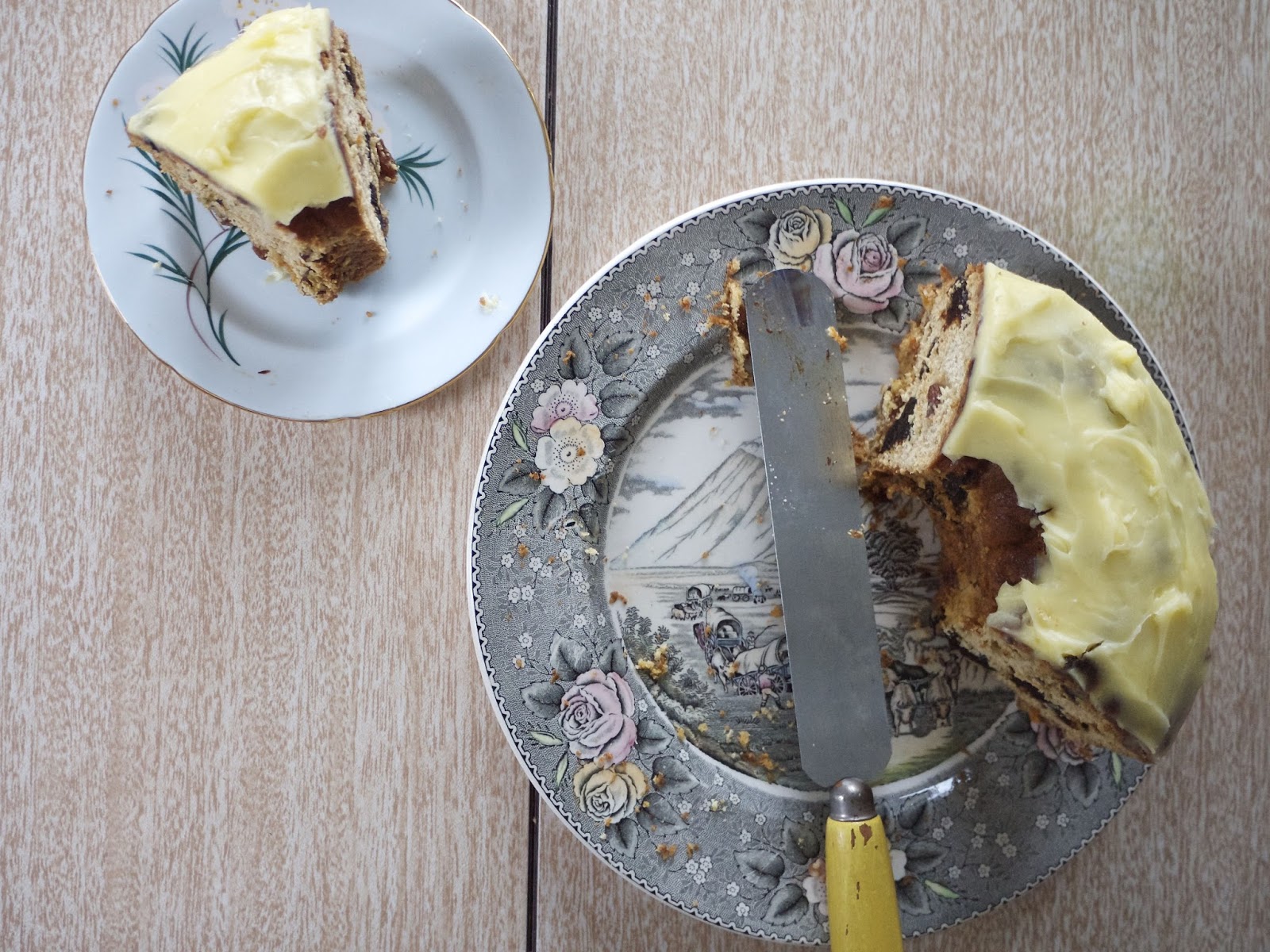Keeping it familial, and while you’re here I may as well tell you, the grey rose-patterned plate that I photographed the cake on used to belong to a family friend’s great-aunt (if I remember correctly) and it was given to me as a birthday present years ago. The blue gold-edged plate belonged to my late grandmother on my dad’s side. I love new things and new cookbooks but there’s something quietly lovely about looking at a cookbook and seeing someone’s handwriting on it, someone who only knew you when you were a baby, and thinking about them at your own age; or how a plate that would’ve had a thousand different cakes on it throughout the years is still getting to have cake on it; or just, I don’t know, knowing that these bits and pieces aren’t stuck in a cupboard somewhere but are still getting used and loved. It’s nice!