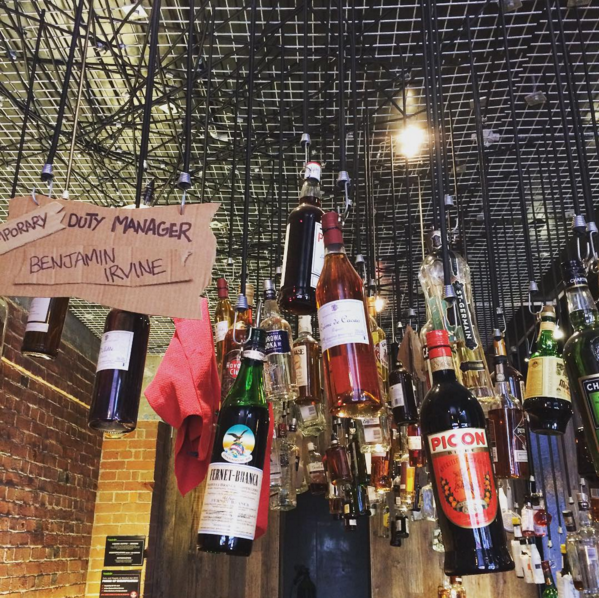 What happened: So as well as being brought into existence by thoroughly good guys, Hanging Ditch has a particularly idiosyncratic approach to its backbar: all the bottles are suspended from the ceiling, twinkling in the soft light like ethically-sourced diamonds. It’s honestly a stunning effect, and I suddenly understood why small babies can be so entranced by dangly items on a mobile. As well as looking glorious it’s also remarkably practical, by which I mean, all bottles appear to be easily grabbed for drinks making and no one seemed to hit their head.