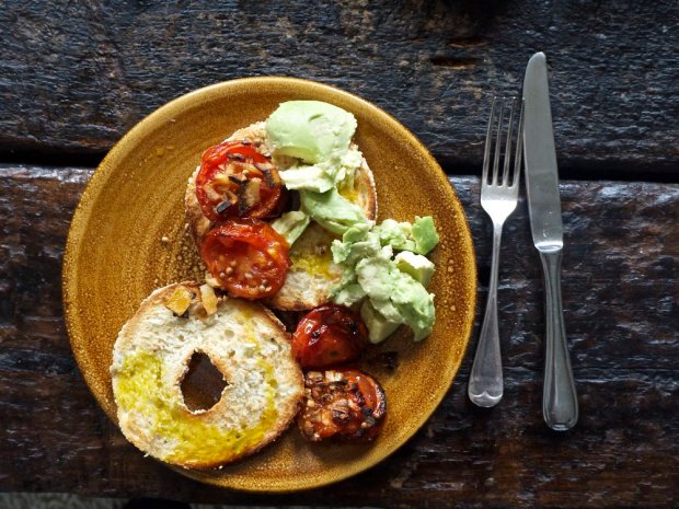 Preserved lemons have a compelling lemony (duh) saltiness; and strange though it seems all you need from each soft piece of fruit is the actual yellow skin – slice off as much of the flesh and white pith as you can (and then inevitably eat it to see if it could be that salty: yes it bloody is.) The remaining zest is full of concentrated sourness and salt, yet it’s somehow kind of mellow too – a bit like how garlic can be rich and sweet and make your eyes water at the same time. Stir it into pasta, use it in anything even vaguely Mediterranean, eat on its own out of curiosity, use it to flavour olive oil. Or do what I did: make these gorgeously scorched little roasted tomatoes, warm with cinnamon and caramelised slightly and stir them into pasta or anything vaguely Mediterranean, or just eat them squashed onto a bagel with some thankfully perfect avocado.