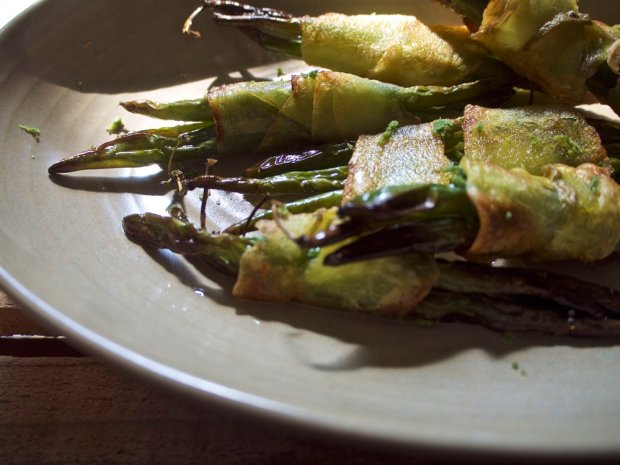 Remove the wrapped beans to a plate when you’re quite satisfied with their done-ness, sprinkle over some salt, and eat em. The remaining scraps are particularly good with some smoked paprika and the remaining basil salt.
