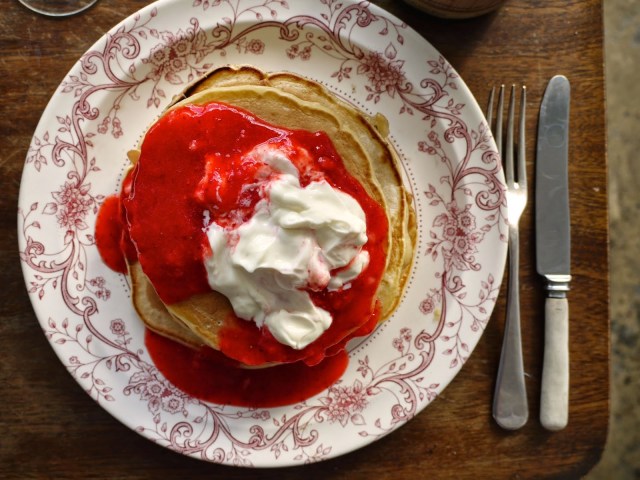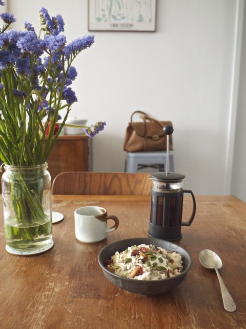 On account of this peskily sore throat I’ve done more or less nothing lately, I’ve either been in bed or at work; when in bed I’ve been on a Nigella-watching spree – I mean this in the nicest way, but I don’t have to think at all when I’m watching her show, and it doesn’t matter if I fall asleep halfway through, and all the stirring and gentle clattering and plummy vocals are utterly soothing to someone like me who adores background noise while I sleep. So you can see how I’m so Hallelujah-chorus rapturous over this porridge, it’s pretty much the most exciting thing to happen to me in the last few days. It was so delicious though, that I’m very sure it would still provide some kind of thrill even if you’re in full health.