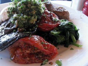 After work Tim and I bought a bottle of cheap red and found this adorable middle Eastern BYO called Casablanca to quaff it in. The service was perfect, the food was cheap, plentiful and fast, and the atmosphere was delightful. It’s not very fancy, but it’s fun, and the food tastes comfortingly home-made as opposed to assembled. A small plate of complimentary bread and dips appeared after we sat down, and we were asked if we were ready for our mains to be made after we finished our starters, both nice little touches that made the dining experience that much better. I wish I’d had my camera to take a photo of my taboulleh which was particularly delicious – full of verdant, fresh parsely and juicy tomato.