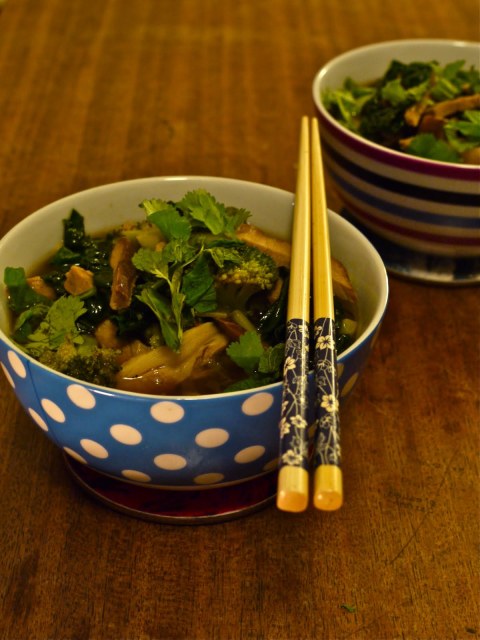The thyme really does make a difference, flavour-wise (okay, I will make a laboured joke about time making the difference here) but I don’t recommend fronds of it as a garnish like I did here. It got all tangled up sinisterly in the spoon every time I went in for more, like seaweed lazily but determinedly knotting itself round your ankles.