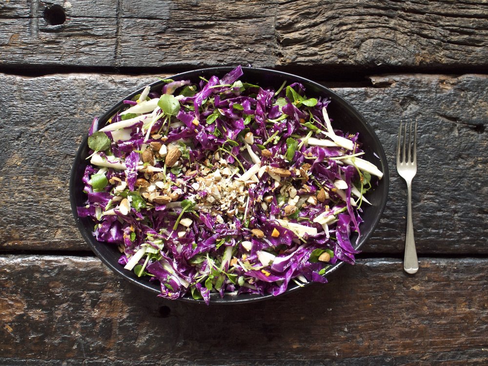 PS: If you’re feeling this slaw, you may well want to check out some other recipes I have along these lines, such as the Lee Brothers’ Cabbage and Lime Salad with Roasted Peanuts, my Silverbeet, Parsley and Horseradish Slaw, or my Aggressively Healthy Bowl with Matcha Mayonnaise (and there’s nothing stopping you making the mayonnaise to dress the slaw in this blog post, it would certainly fit the context.)