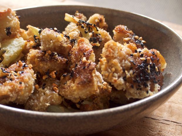Fortunately, I’m very adept at one thing and one thing only: being very adept at many things. And one of those things is coming up with recipe ideas in a great hurry. I was somehow not terribly stressed by this, probably because food is one of the few things that is not stressful for me, and because though I could’ve planned something sooner, I knew that I would instinctively be able to deliver something at the last minute. As you can see from the photo above, a lot of the heavy lifting was done by store-bought crunchy things, but right on cue, two ideas for dips descended upon my brain at once. The first concept was for roasted butternut mashed into tahini, and the second, slightly more avant-garde concept, was roasted cauliflower blitzed to a puree with miso paste. They were excellent. And because I liked them both so much, you’re getting both recipes.