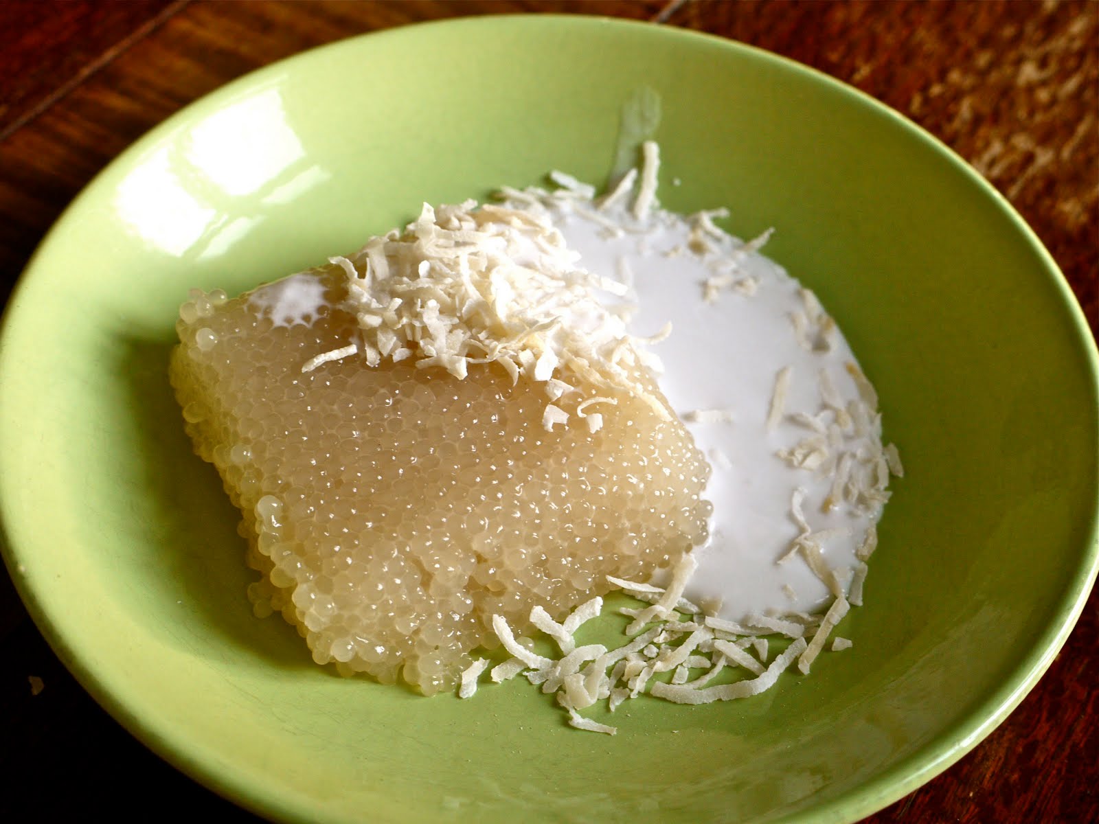 Even though I’m pretty sure I never got fed sago or tapioca when I was a kid, I always assumed I didn’t like it. It just sounded like one of those things I should resist. I don’t remember reading, as an impressionable kid, any Malory Towers books where the girls in lower 6th are all “oh golly, not that sago again.” In fact my main food impressions that I took from those kind of books was that a) there is romance in the tinned peach b) kippers are apparently a Good Thing and c) I want biscuits and butter, right now.