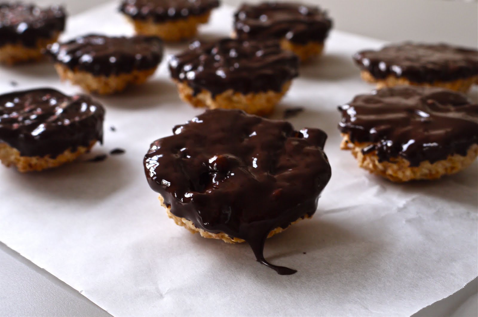 I love them. They’re satisfyingly large, pleasingly occupying both biscuit and cake territory, chewy with the fresh, summery taste of coconut and the bounty bar-echoing delight of their optional chocolate coating. They’re just seriously delicious.