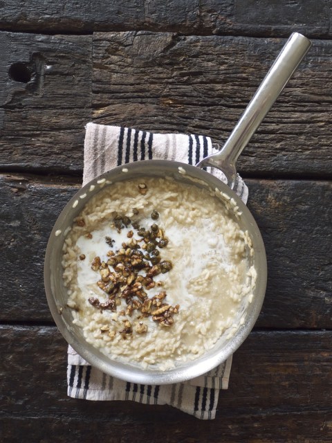 Mix the tahini with the remaining tablespoon of olive oil in a bowl, then add the butternut, a couple of cubes at a time, stirring thoroughly to mash the roast butternut into the tahini, giving you a smooth, creamy puree. Continue mashing and stirring the roast butternut into the mixture until it’s all combined, then stir in the cumin, sumac, and salt. Taste to see if you think it needs any further seasoning, then transfer to a serving bowl. I sprinkled over some pumpkin seeds because I thought it was cute to do so but they are obviously extremely optional.